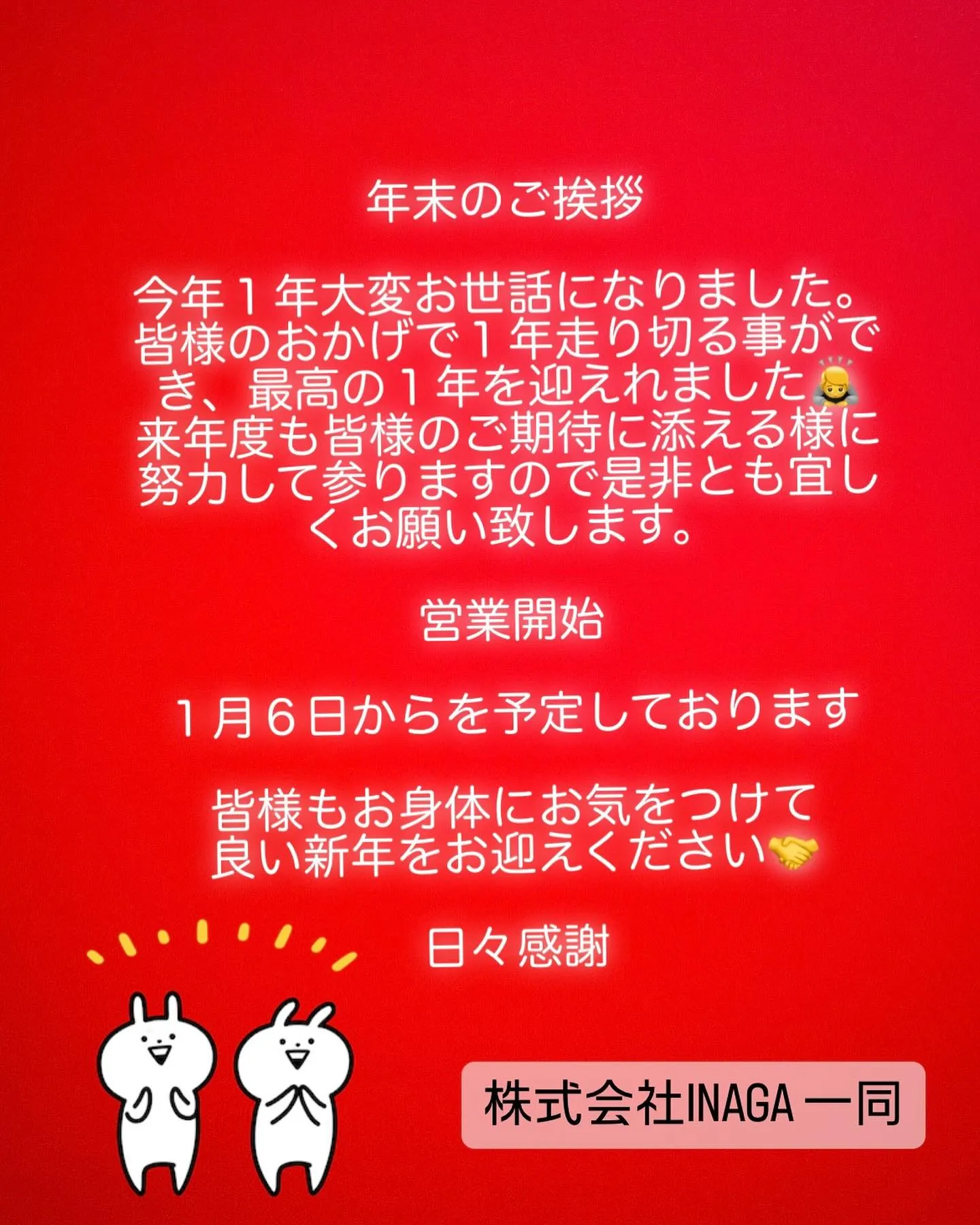 来年も全力のINAGAで行きますので宜しくお願い致します!最高の1年でした!